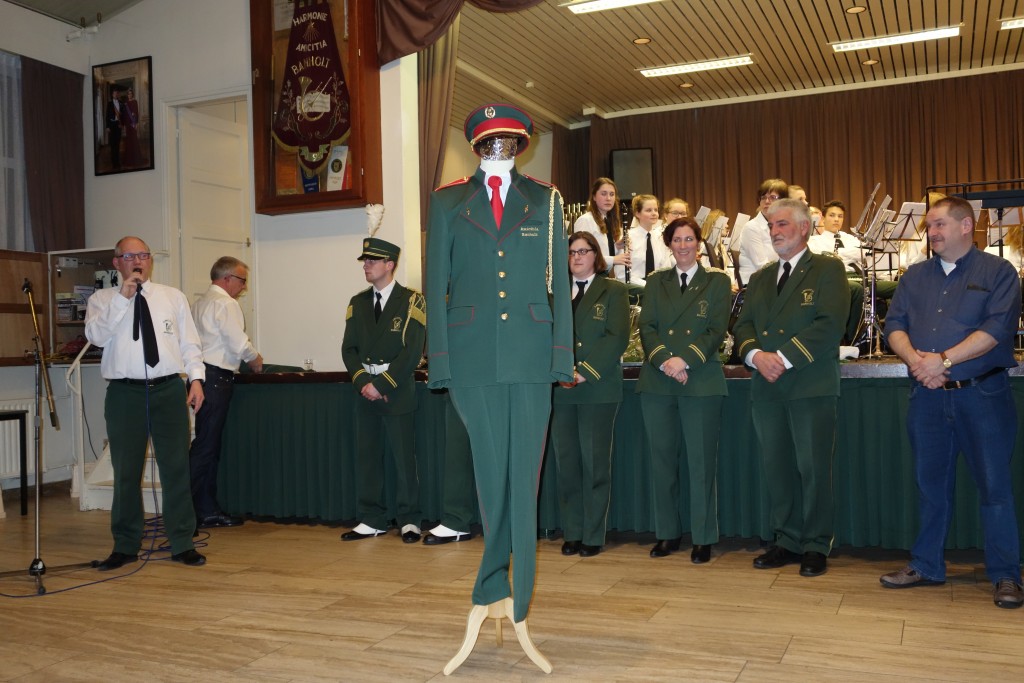 Tot slot en ‘last but not least’ werden door het steuncomité van onze vereniging de nieuwe uniformen van het korps aangeboden. Op 4 juni as tijdens de bronk zal onze vereniging volledig in het nieuw gestoken acte de présence geven.
