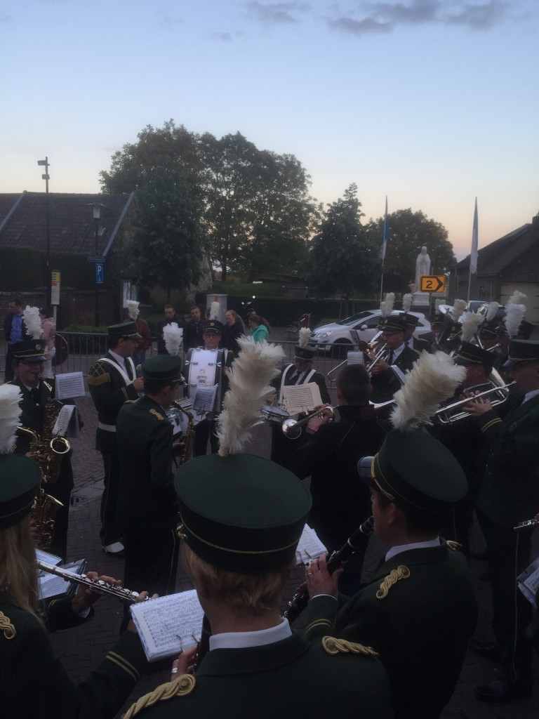 Na het bezoek aan het kerkhof werd de rondgang door Tebannet en Terhorst onder tropische temperaturen voortgezet. In de Zandstraat in Terhorst werd het korps door de bewoners traditioneel getracteerd op een welverdiend drankje. Na deze verkoeling werd de rondgang voortgezet via de Mheerderweg om uiteindelijk bij de kerk te eindigen. Iedereen was drijfnat van zweet!